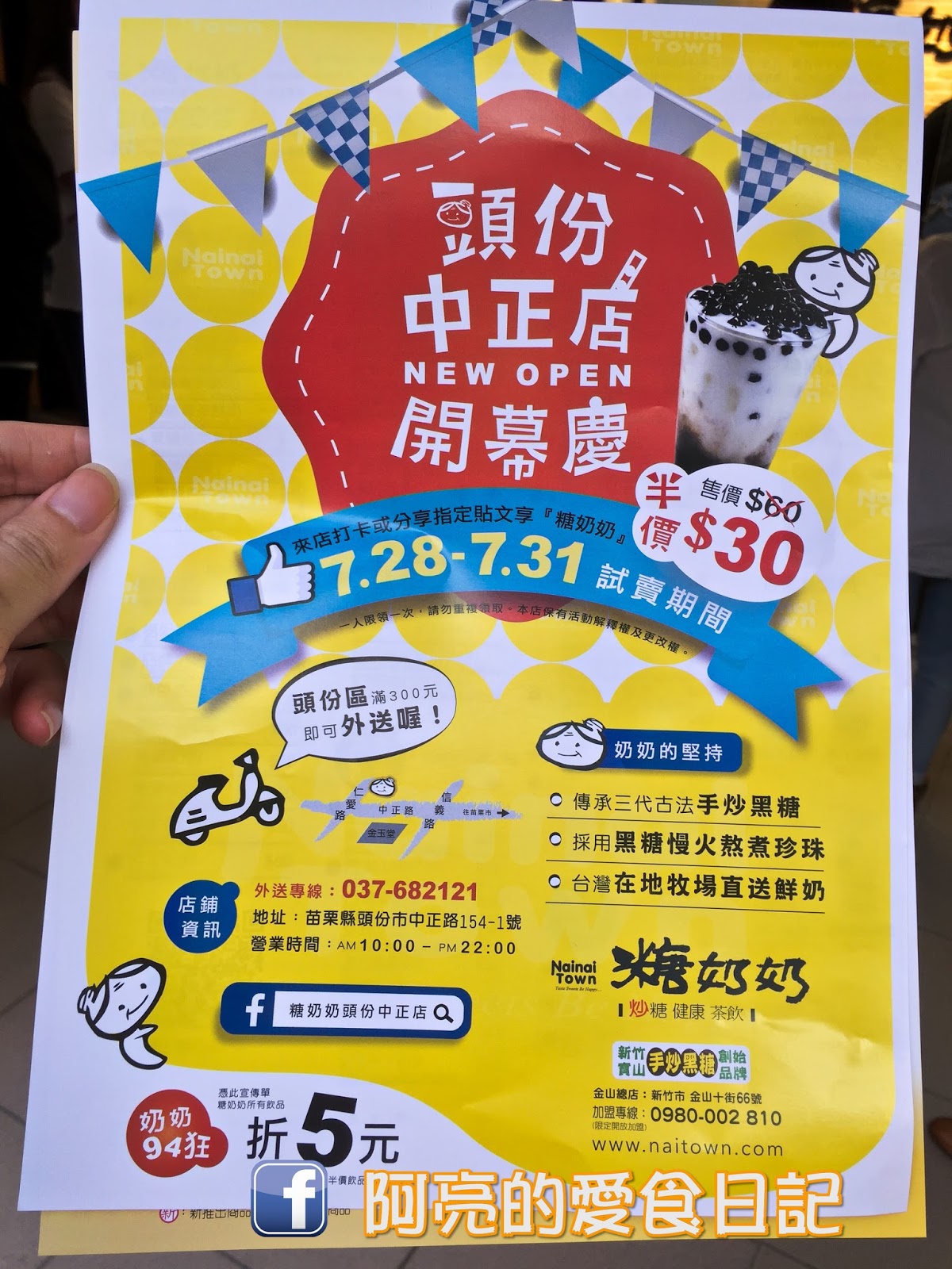 「7.28 - 7.31 試賣期間 來店打卡或分享指定貼文 糖奶奶飲品半價!」